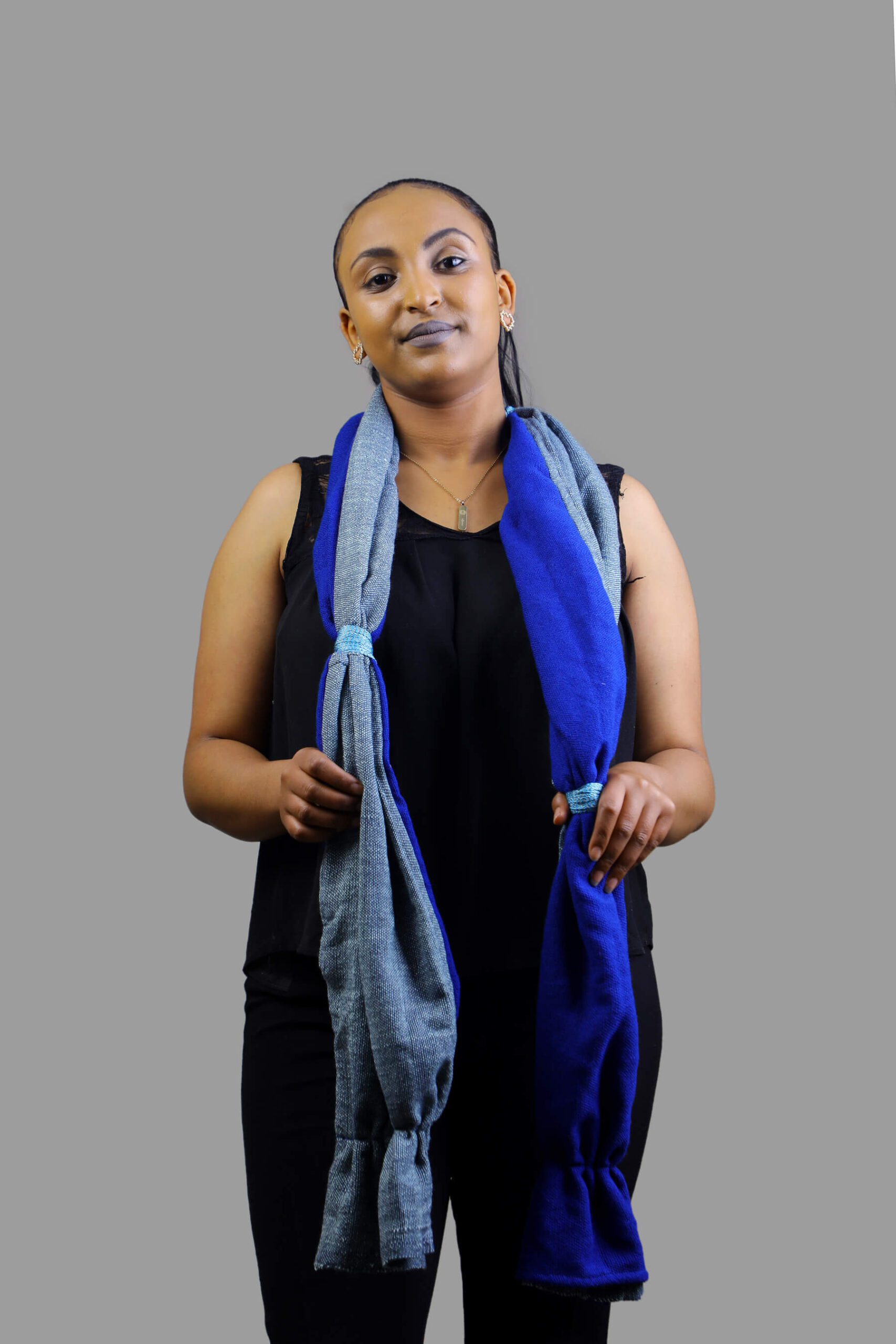 Blue and light blue two sided scarf Enkutatash (Fall) collection – From Ethiopian new year 2016 E.C. (2023) Hand made, 100% cotton and Ecofriendly Dyed. Dress number: L 041 Size: Free size