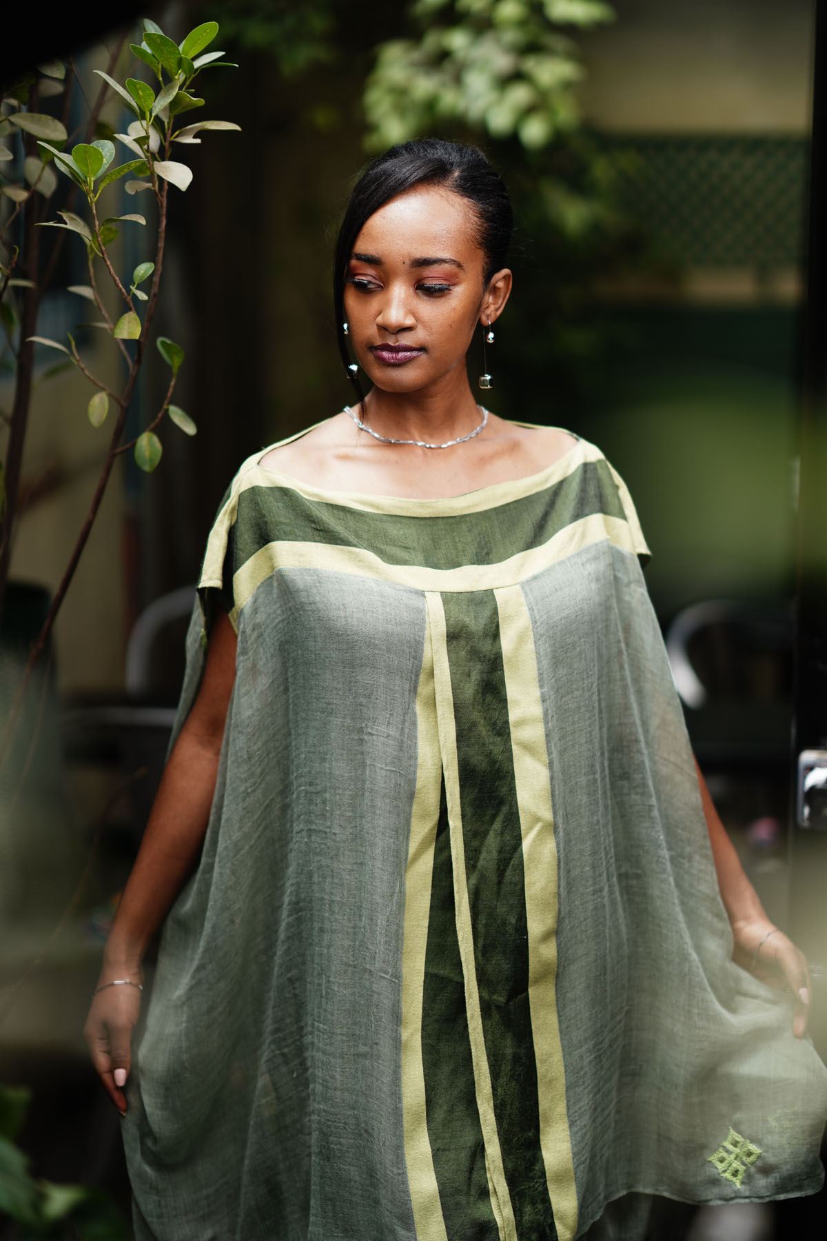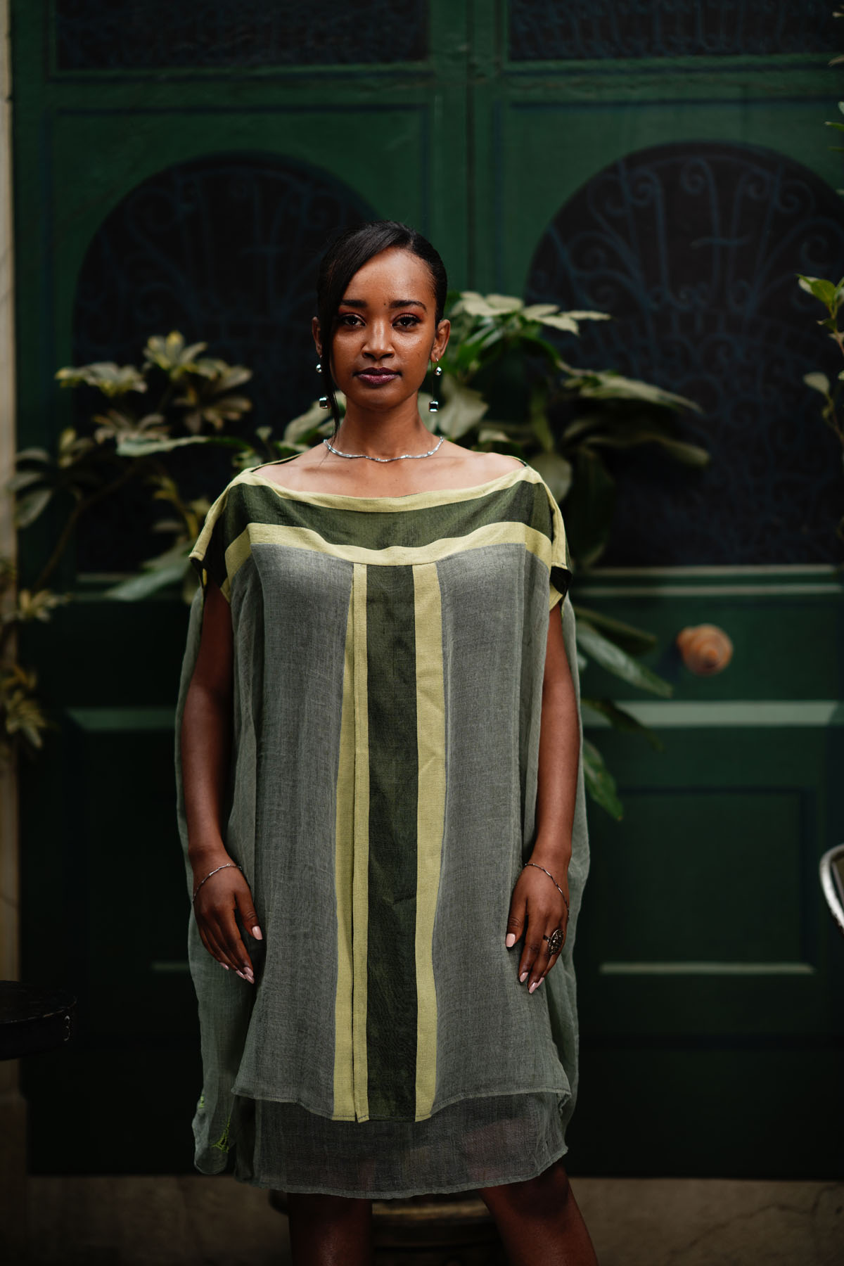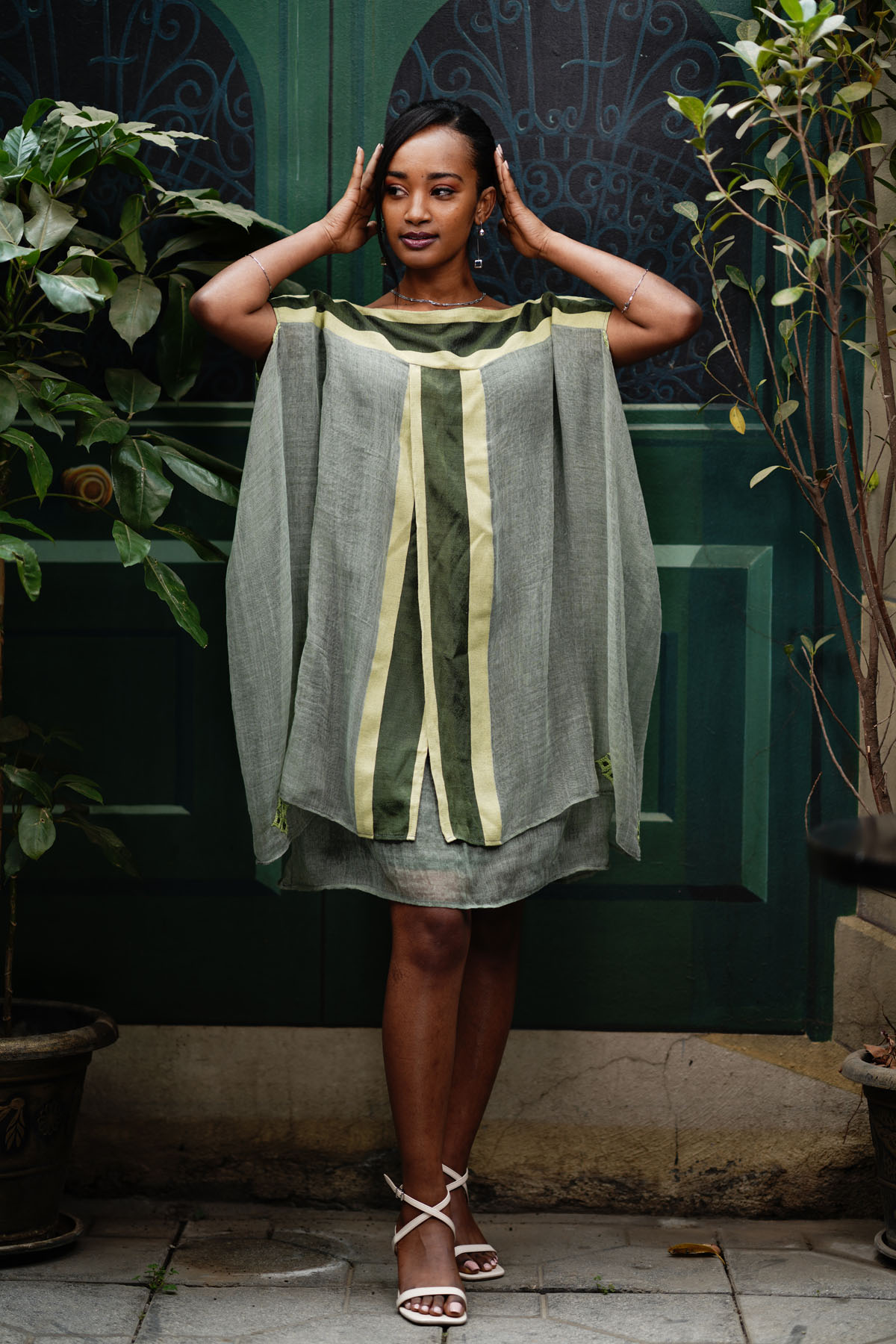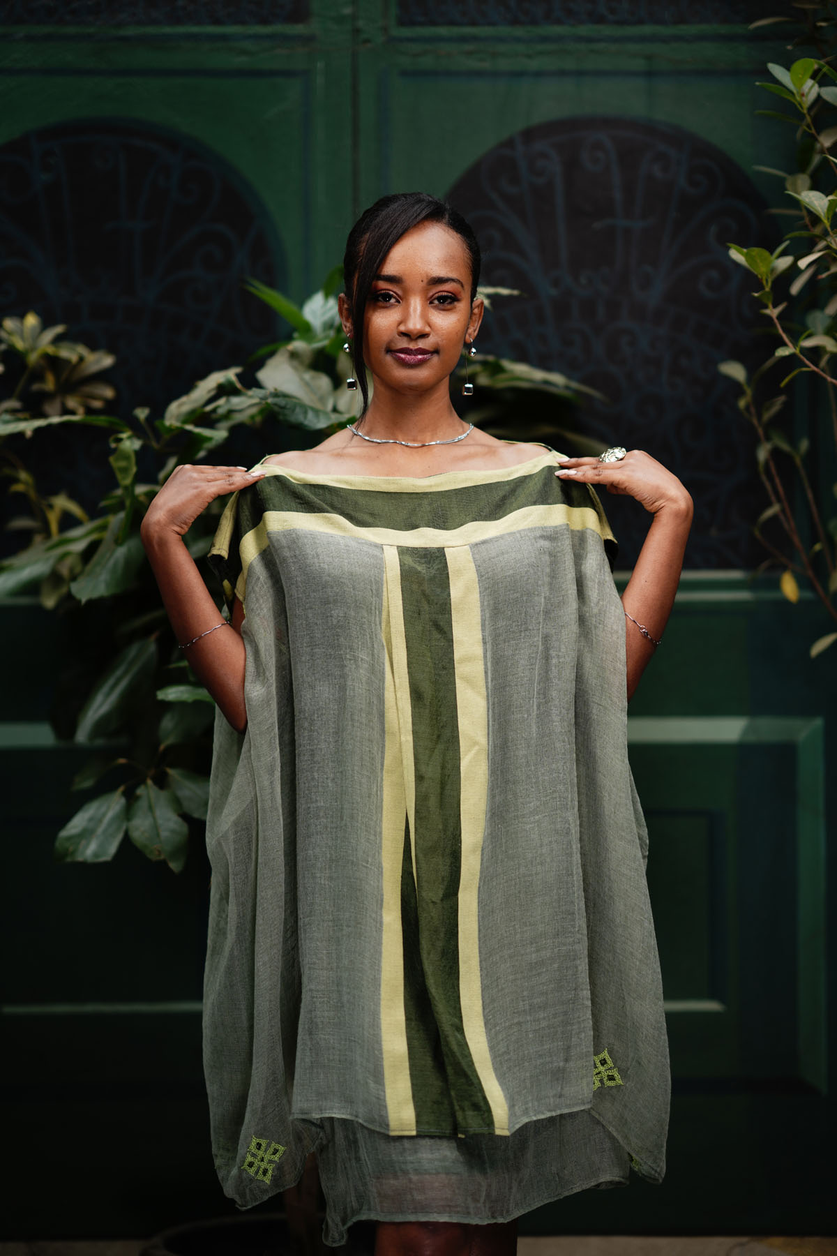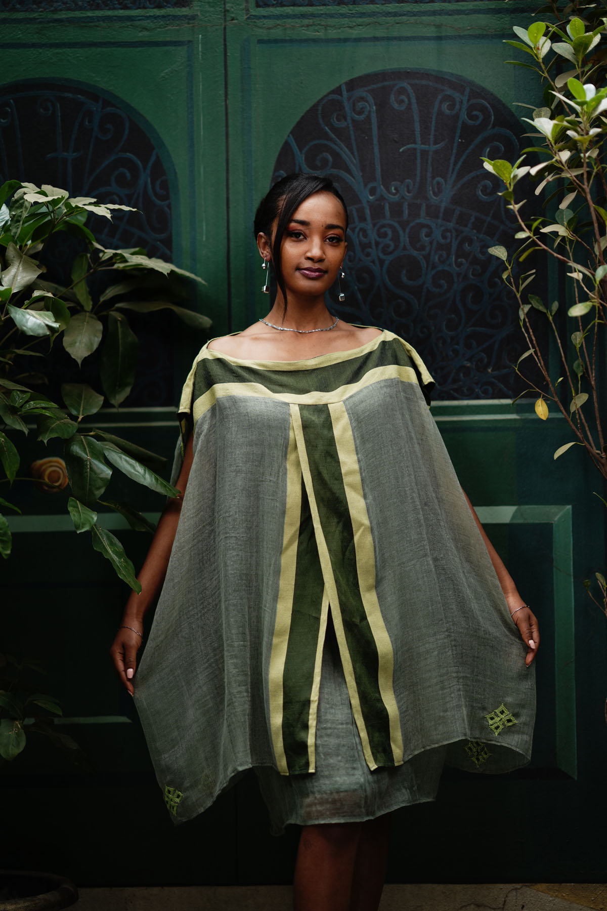 Embrace the spirit of the Ethiopian New Year in our vibrant Green Enkutatash Dress. This two-layered mini dress, crafted from 100% cotton, features a striking combination of light green, dark green, and yellow Tilet accents. The Tilet is incorporated across the shoulders, both front and back, and extends from top to bottom at the front, creating a visually stunning design.