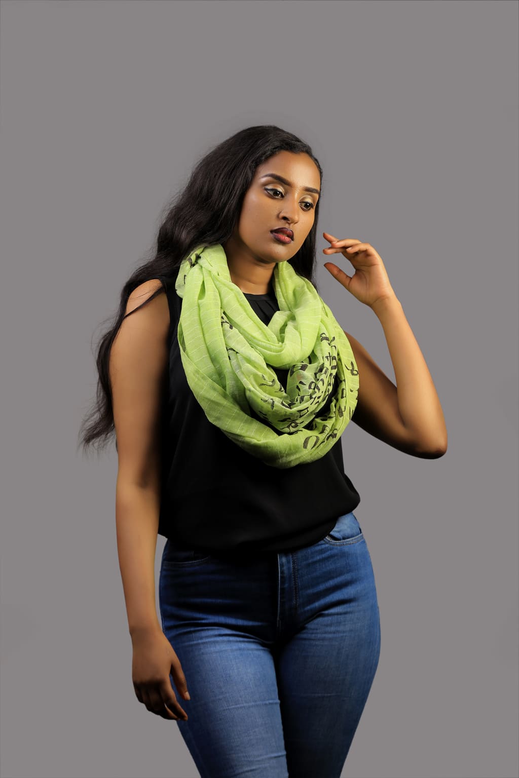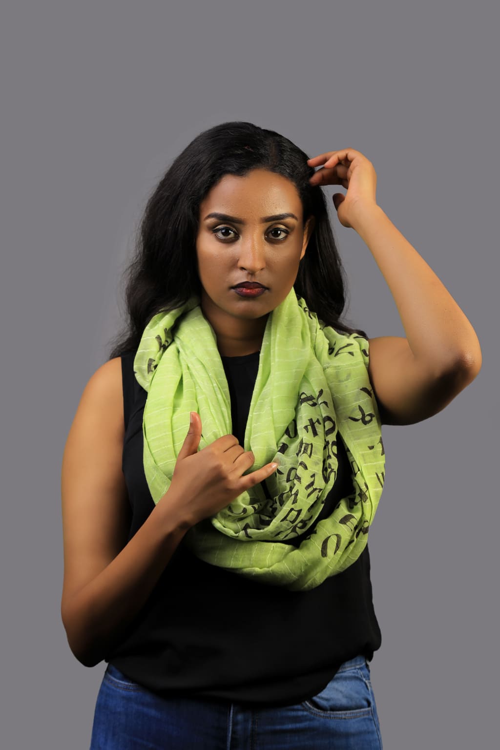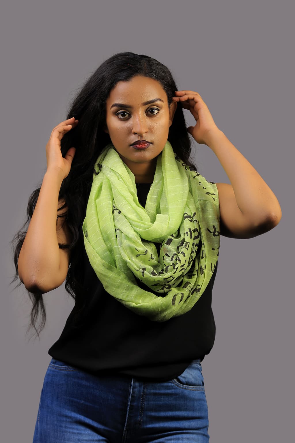 Green Scarf with Amharic letters printed