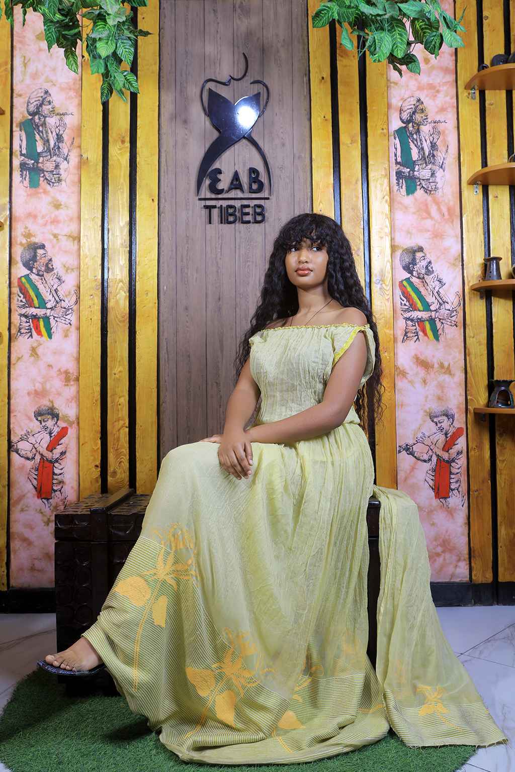 Green yellow Ethiopian new year colored Long dress With yellow Tilet From 2015 (2022) Ethiopian new year collection Dress number: I 001 Available in 3 size: S | M | L