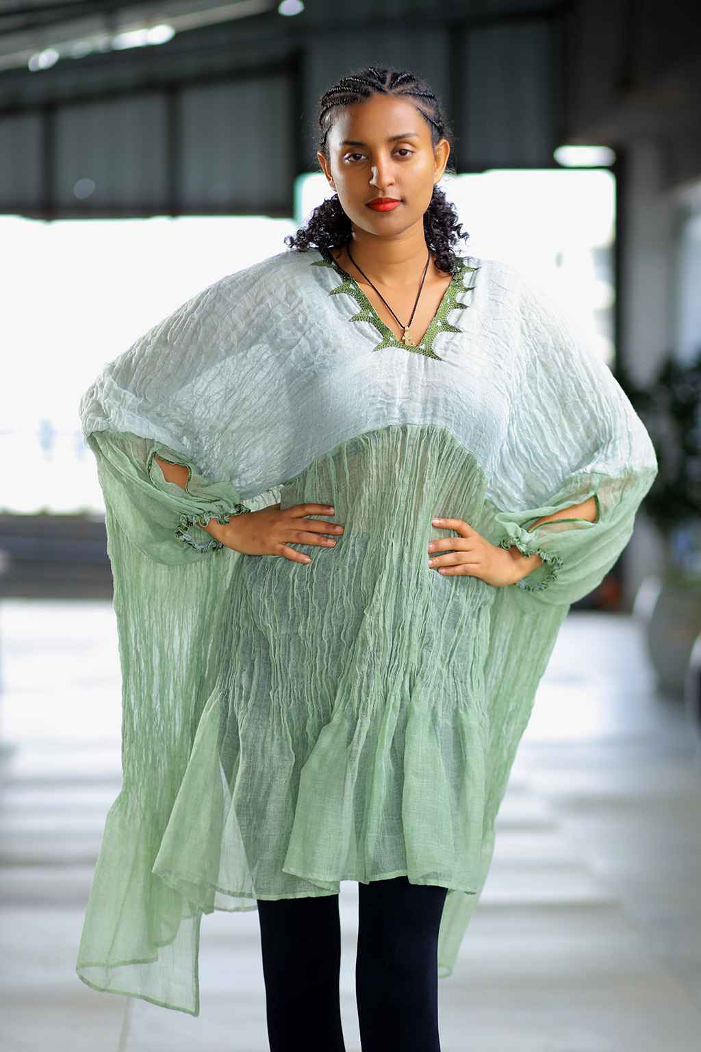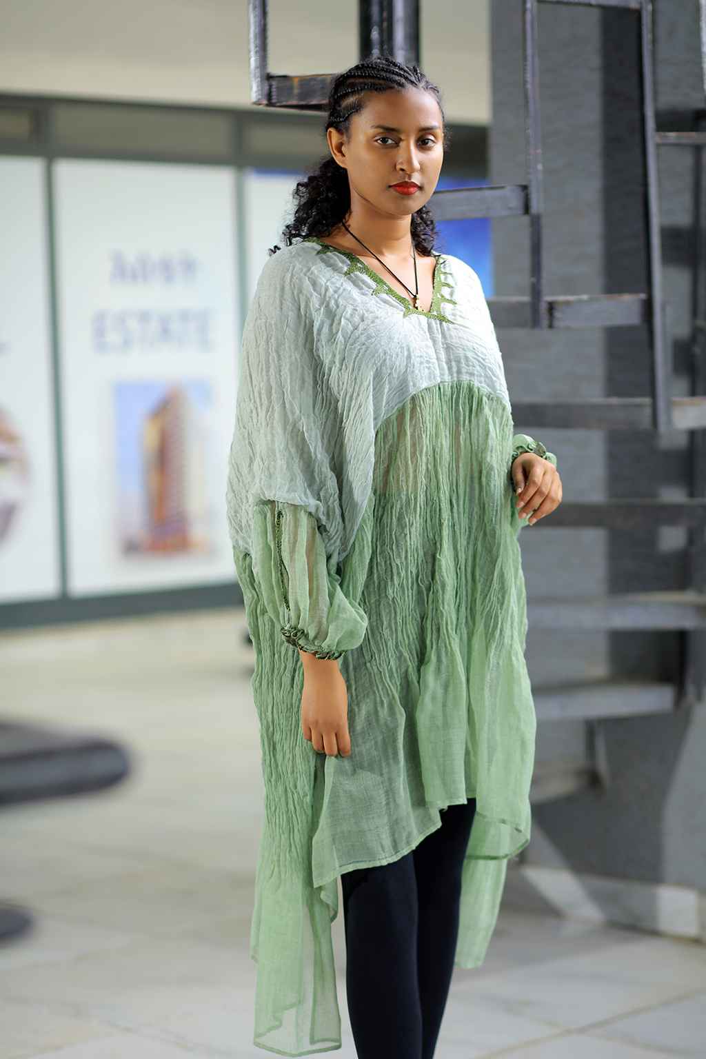 Jade and baby blue color Summer mid long top From 2015 (2022) Ethiopian new year collection Hand made 100% cotton Dress number: I 025 Size: Free size