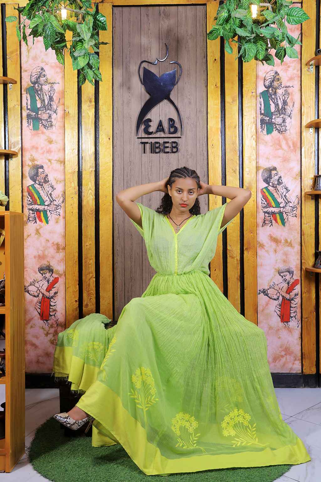 Lime Ethiopian new year colored Long dress From 2015 (2022) Ethiopian new year collection Dress number: I 002 Available in 3 size: S | M | L