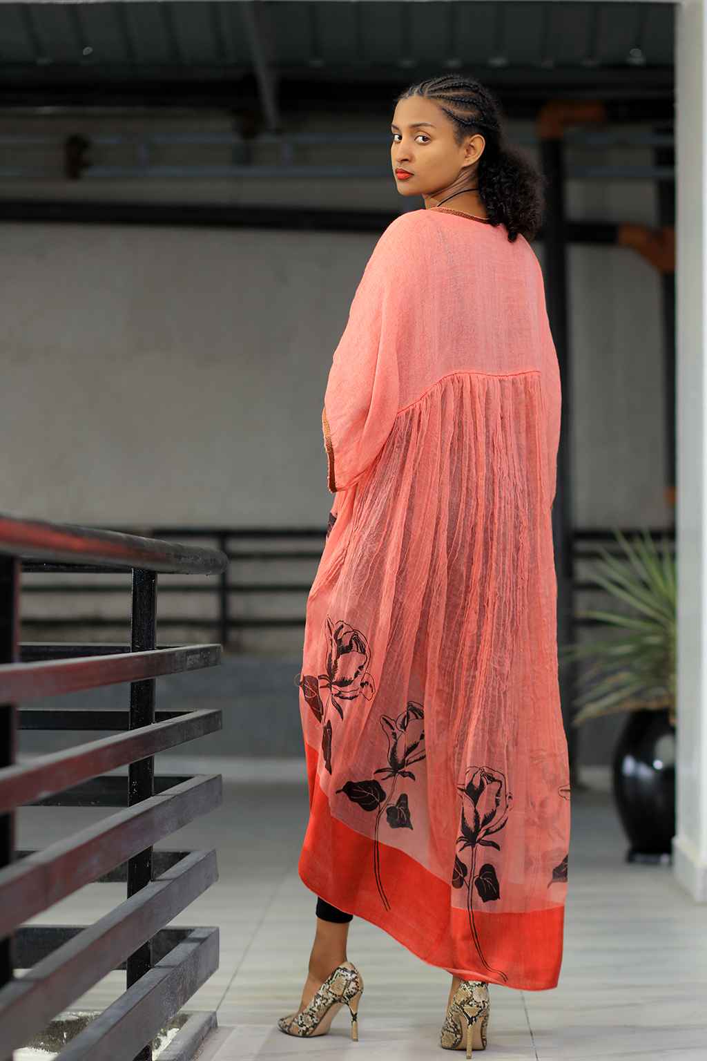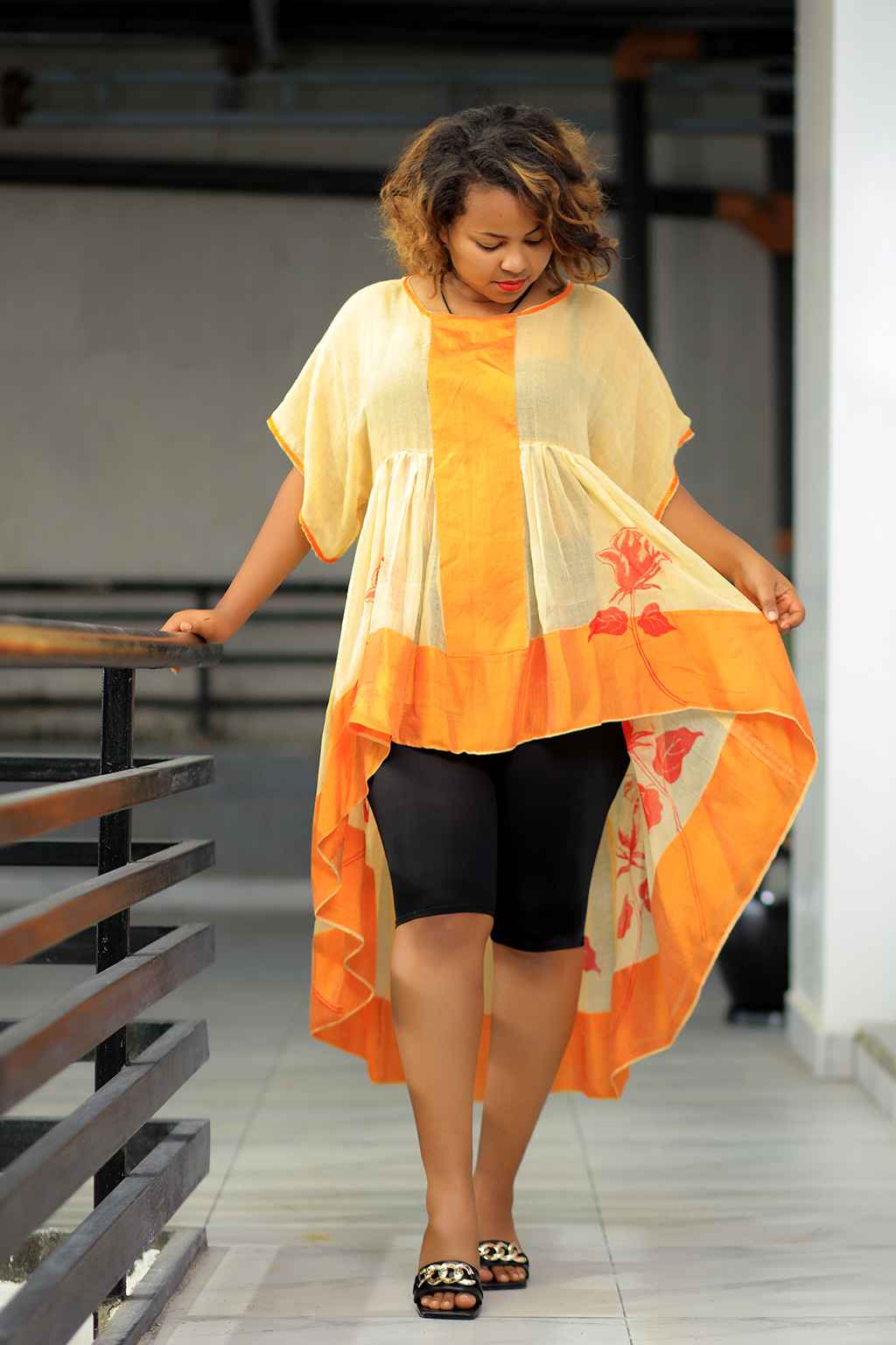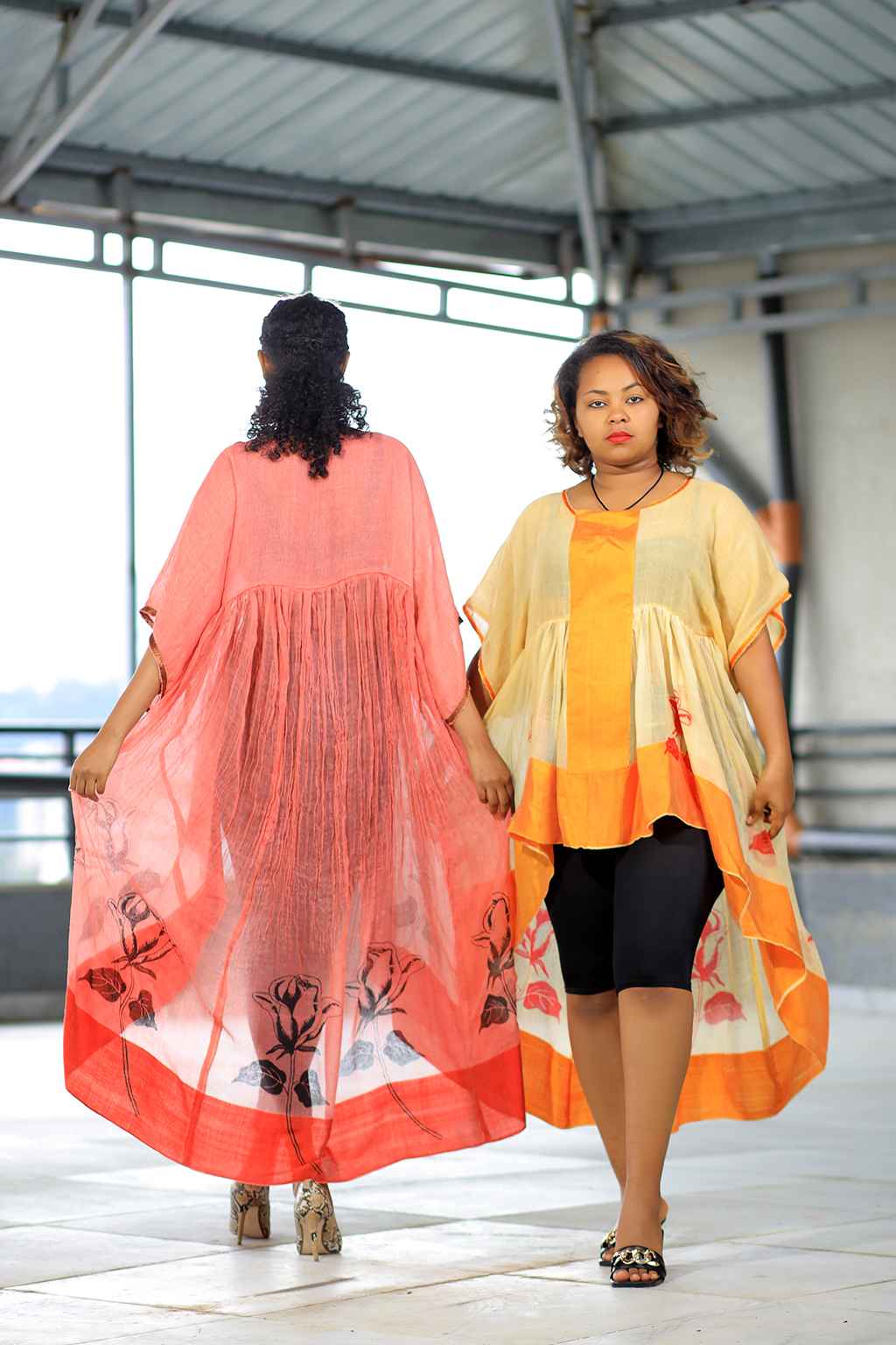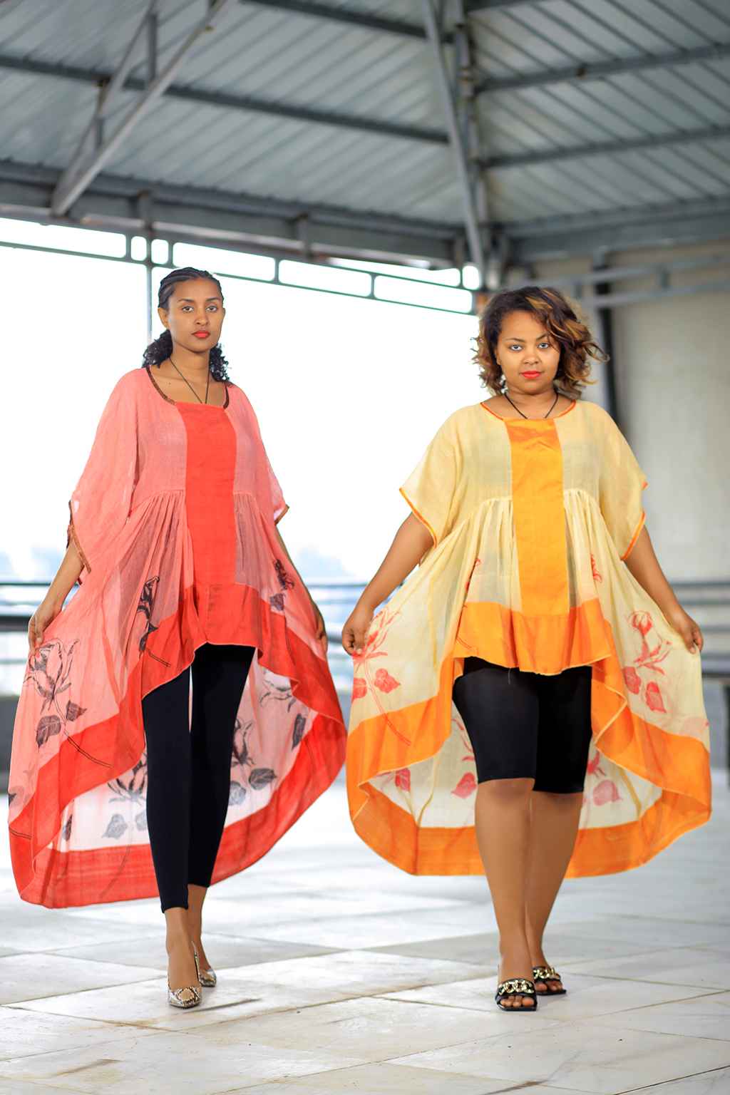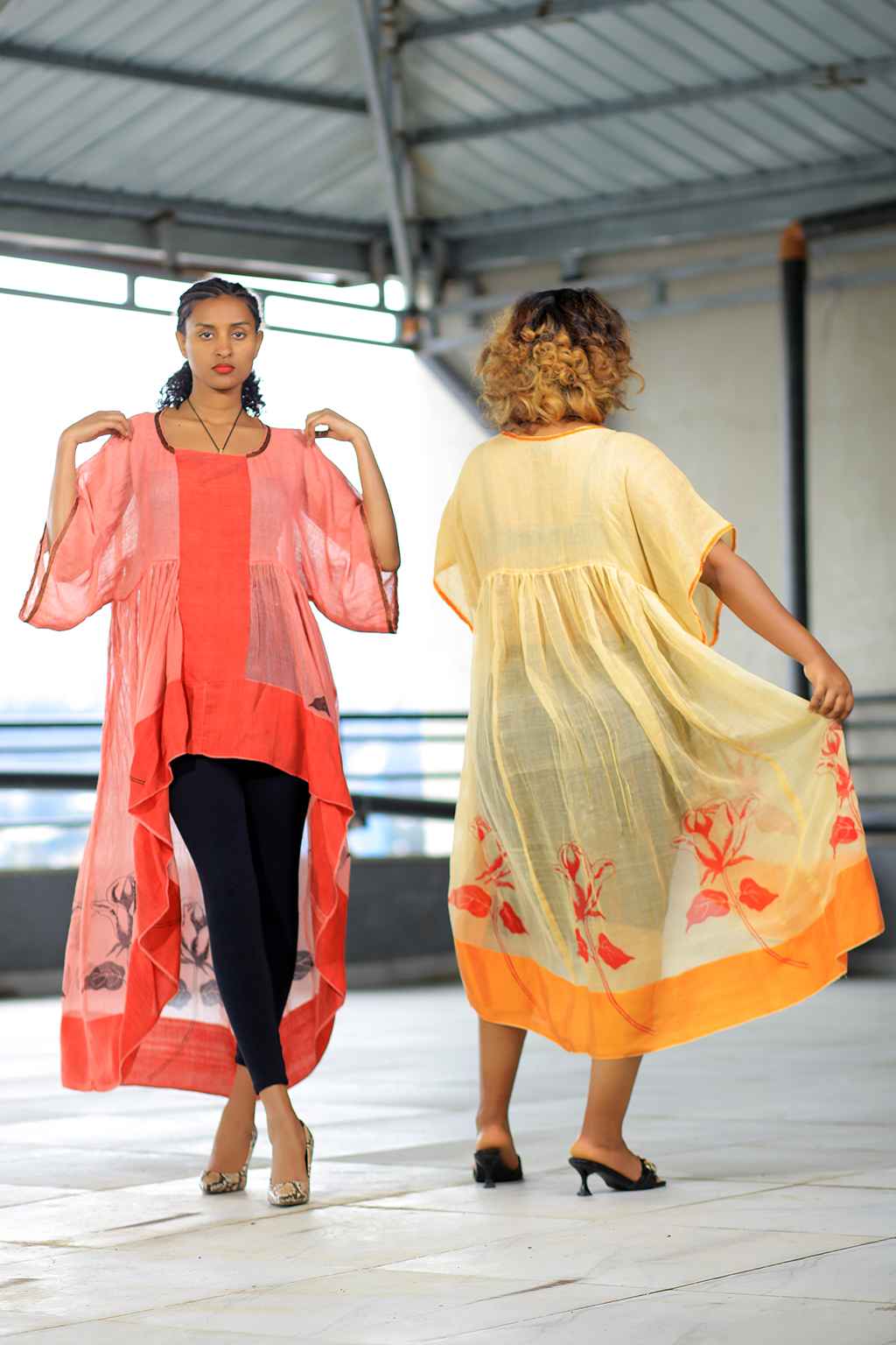 Raspberry with red Tillet and Yellow with orange Tillet dress From 2015 (2022) Ethiopian new year collection Hand made 100% cotton Dress number: I 027 Size: Free size