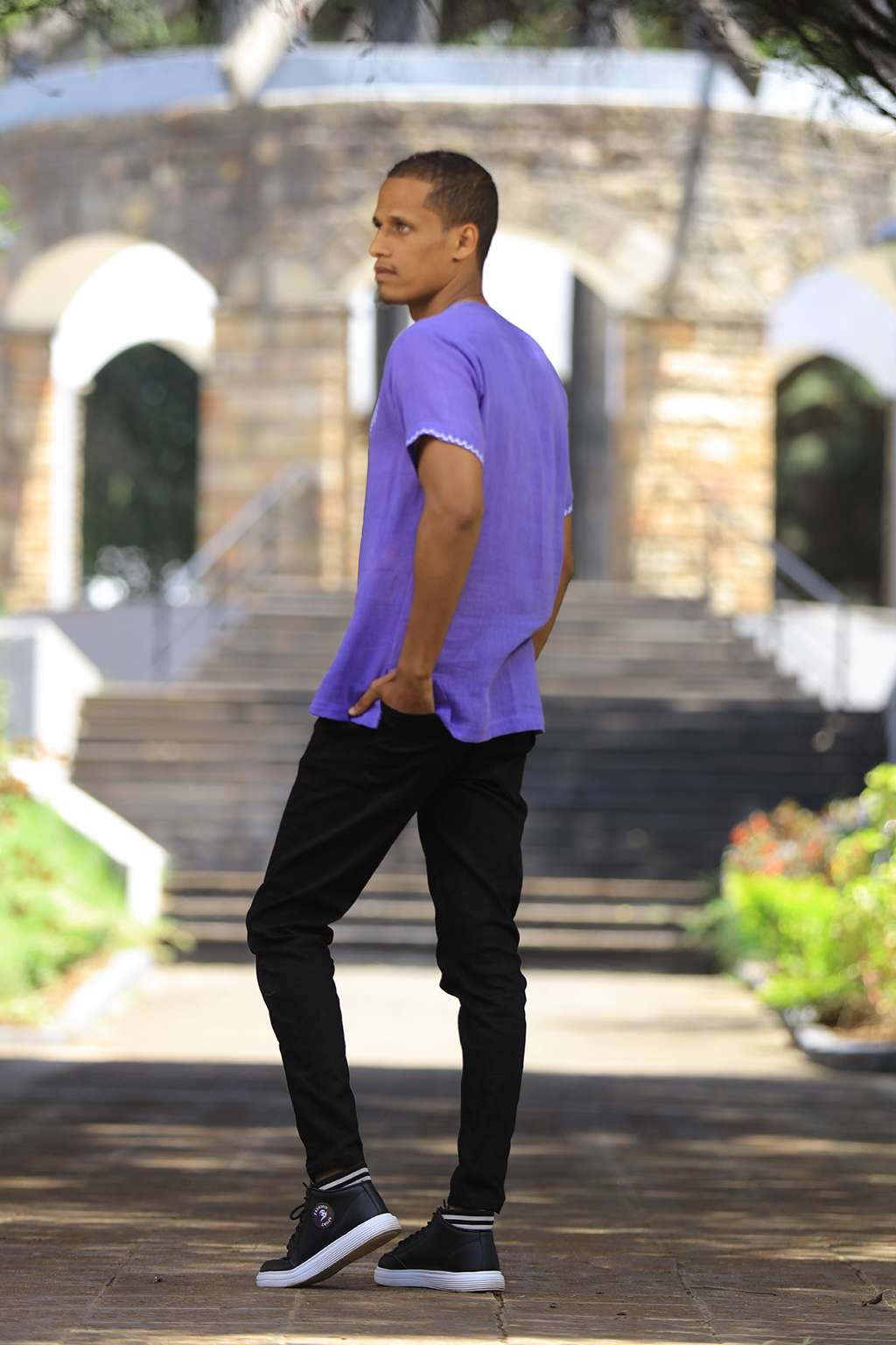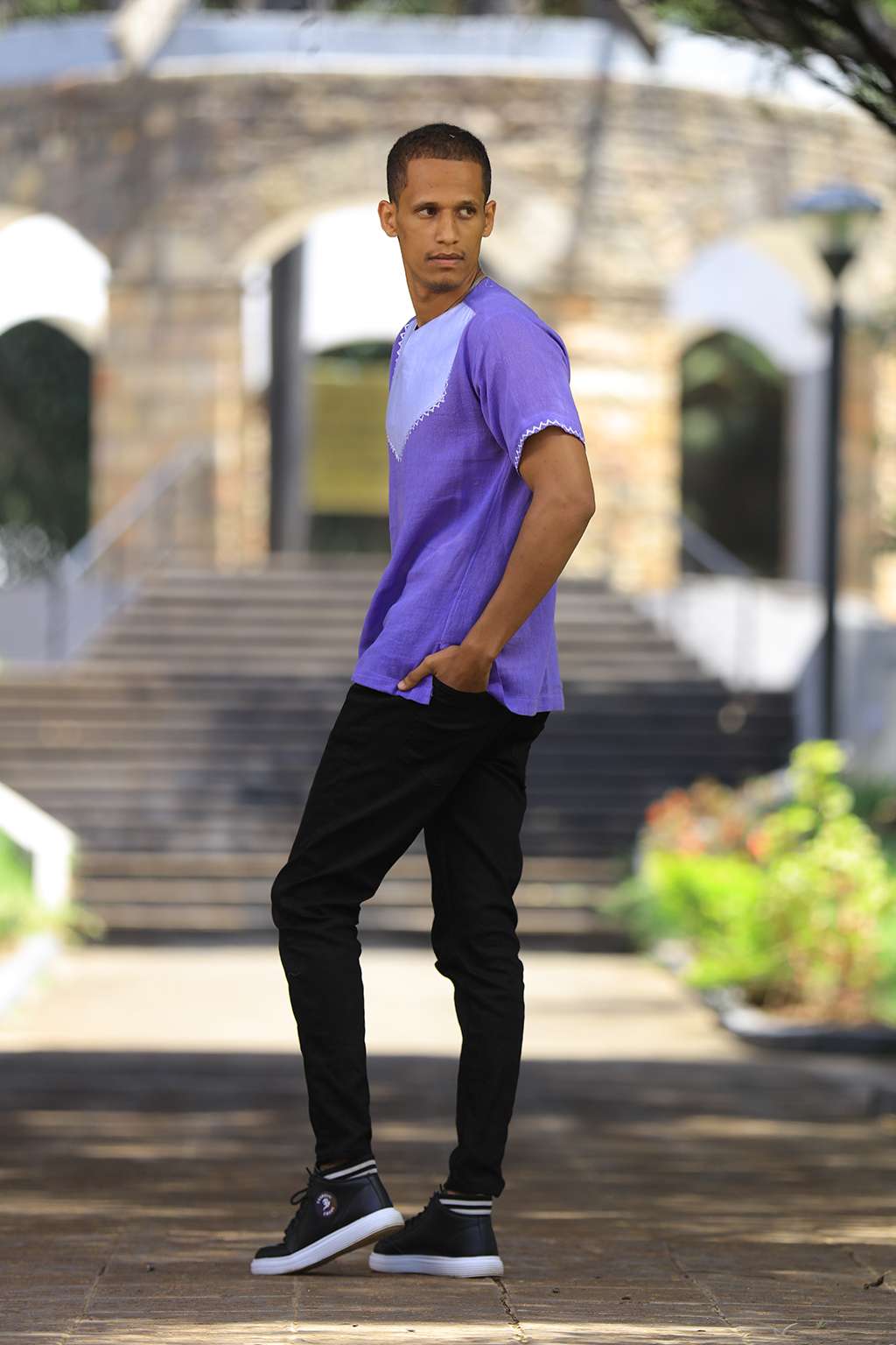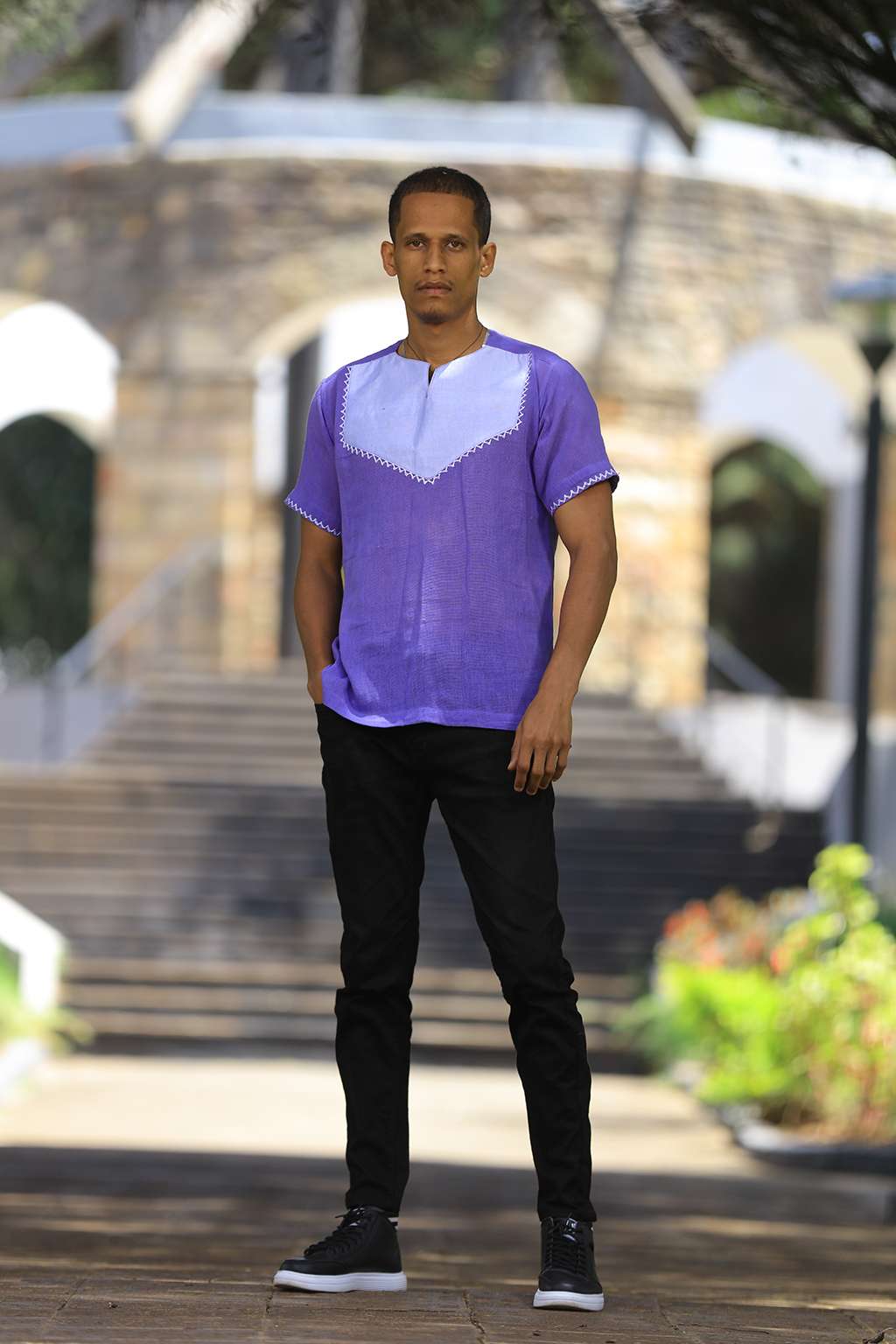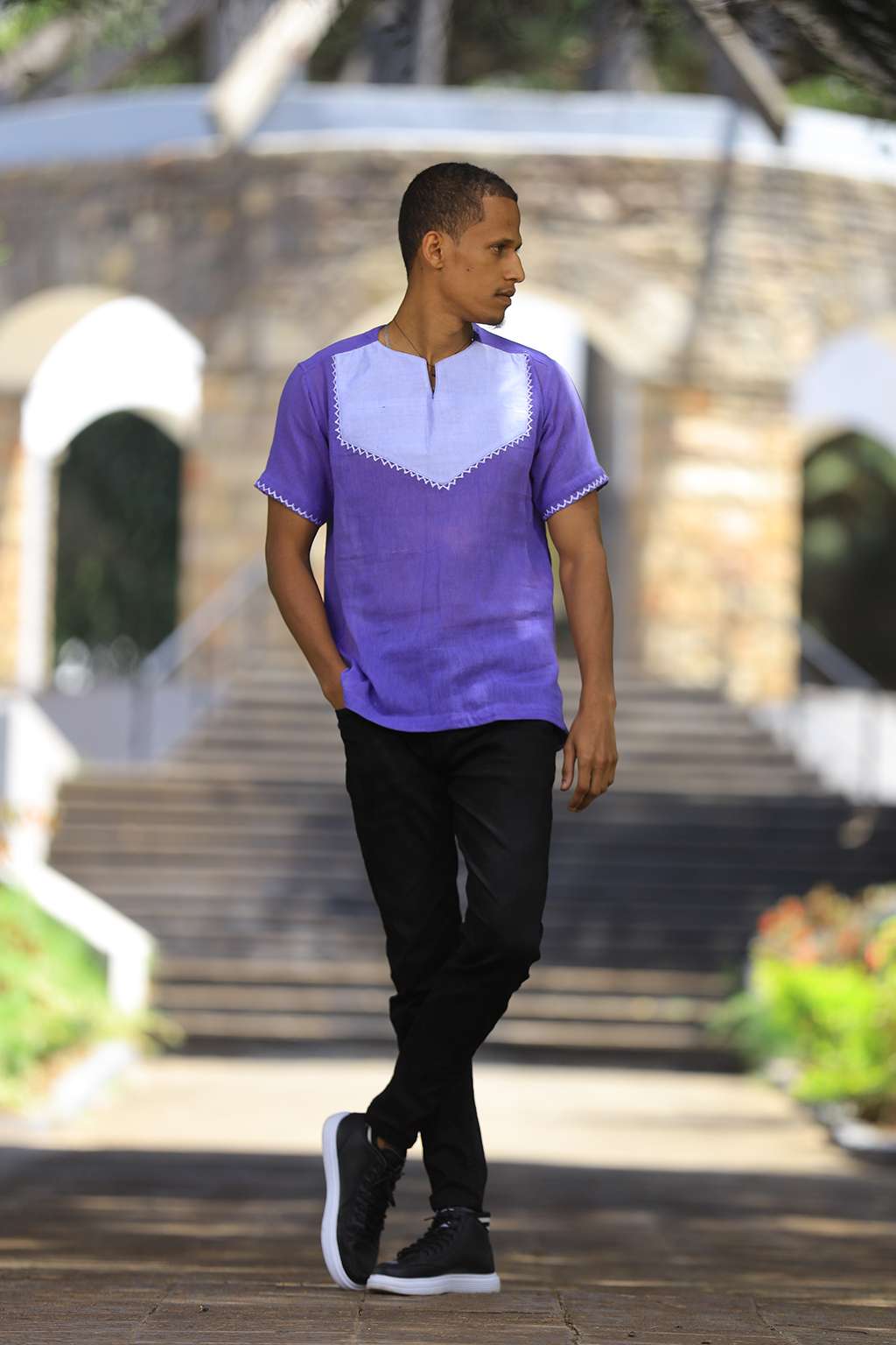 Purple men’s top with white Tillet