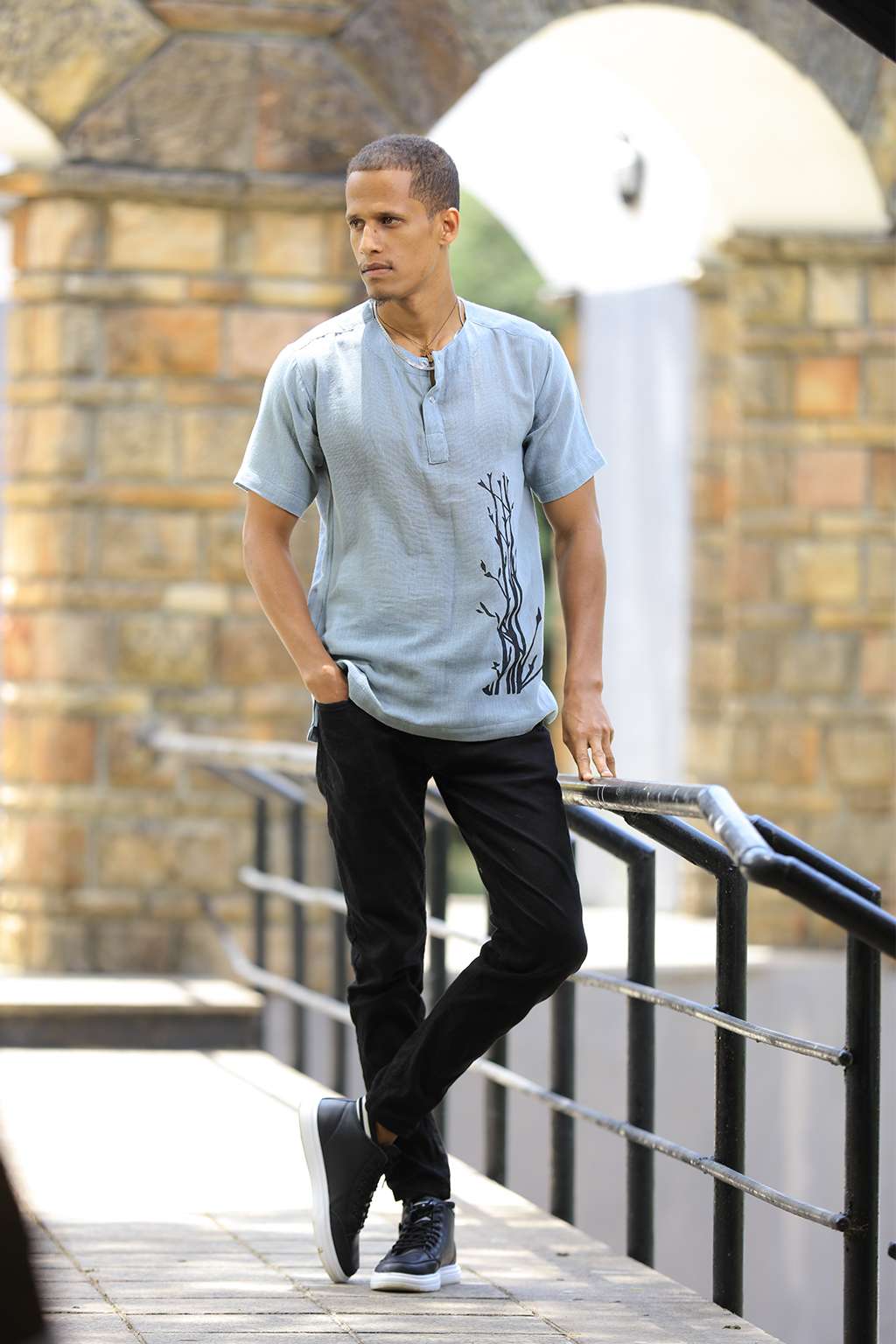 Sky blue men’s top From 2014 (2022) Fasika collection Hand made 100% cotton Dress number: H010 Size: L | M | S