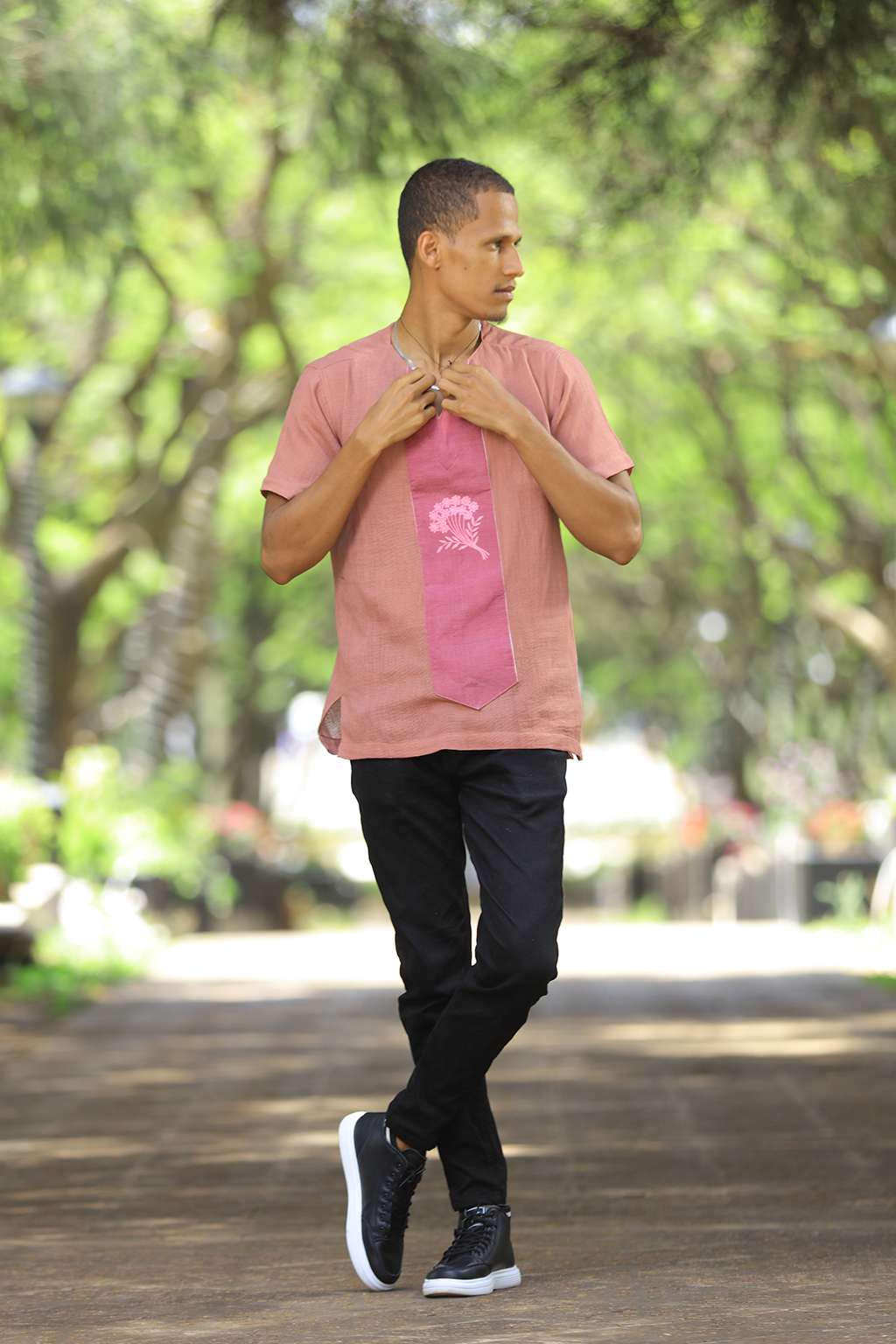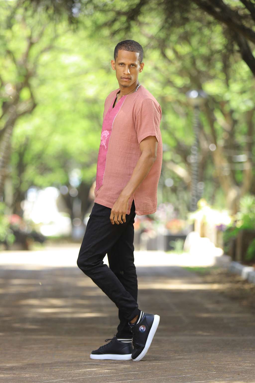 Violet men’s top with Violet Tillet