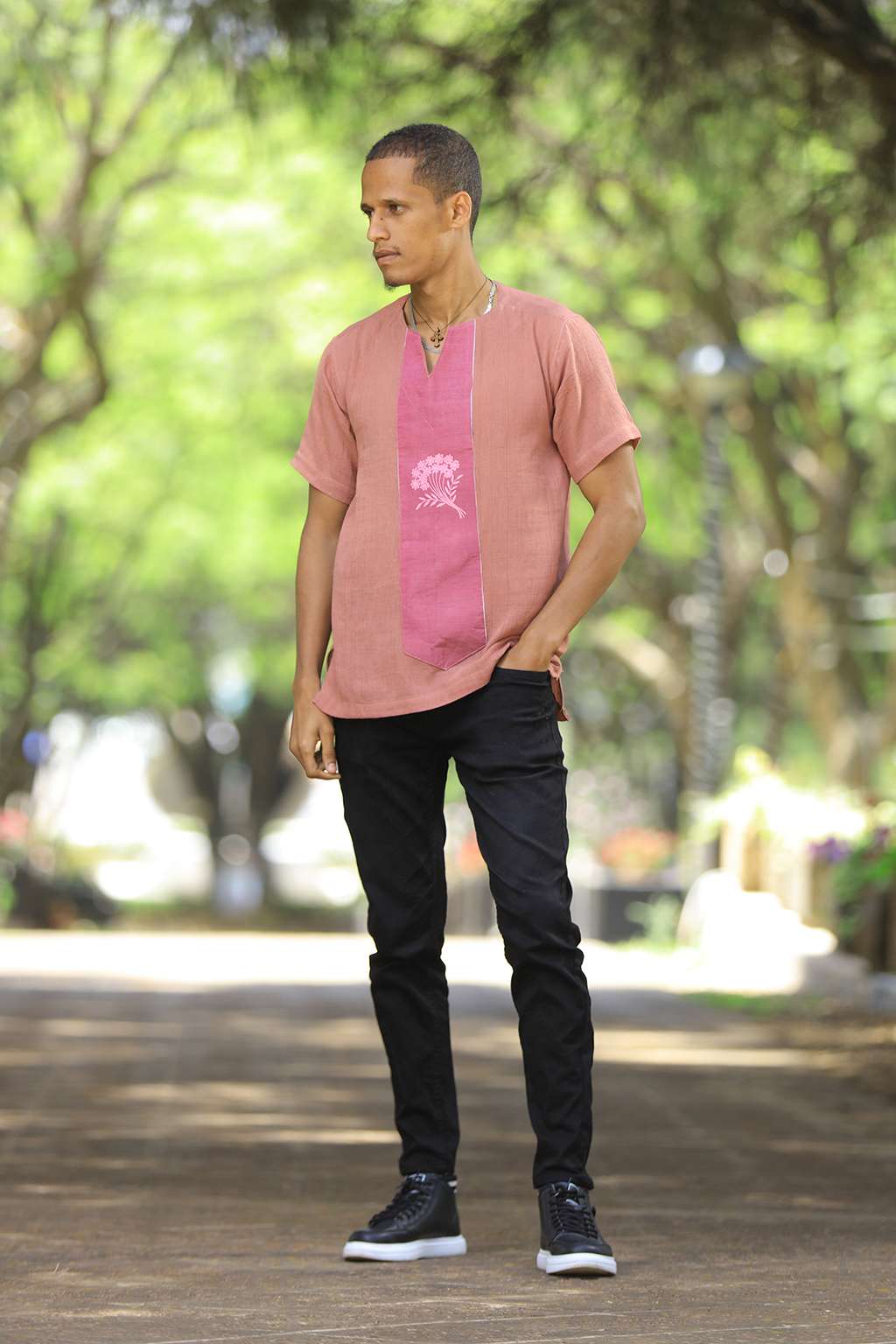 Violet men’s top with Violet Tillet From 2014 (2022) Fasika collection Hand made 100% cotton Dress number: H006 Size: L | M | S