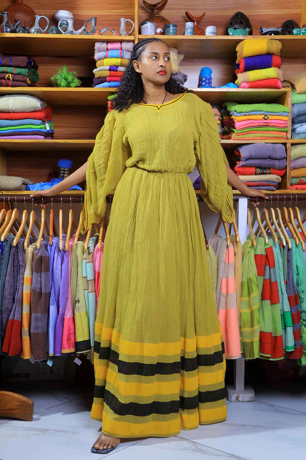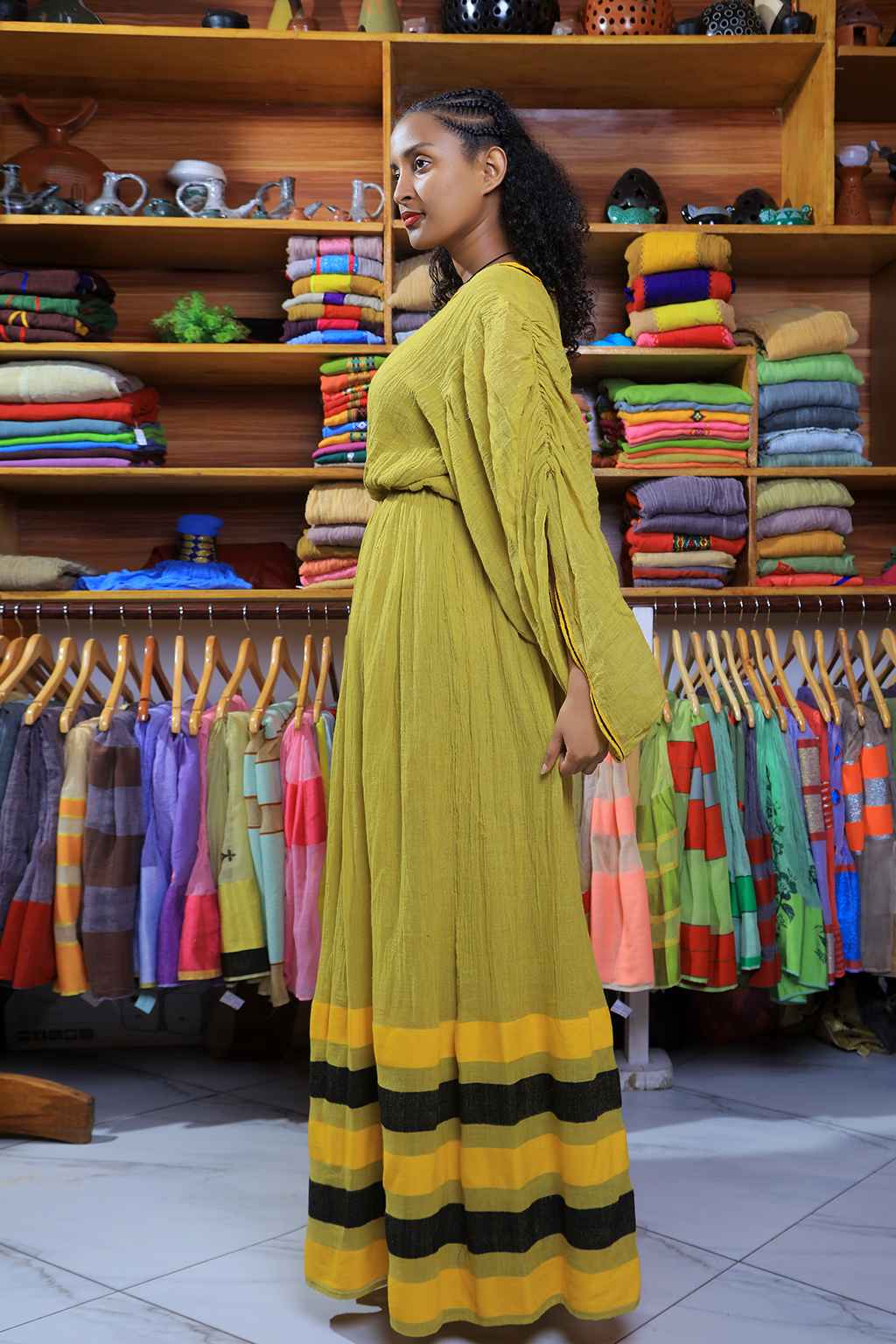 Yellow Green Ethiopian new year colored Long dress with black and yellow stripe Tillet From 2015 (2022) Ethiopian new year collection Dress number: I 011 Size: S | M | L